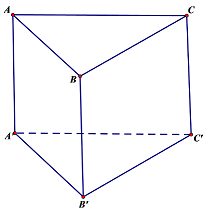 Cho lăng trụ đứng \(ABC.A'B'C'\) có đáy là tam giác đều cạnh \(a\sqrt 3 \,\), A’B = 3a. Thể tích khối lăng trụ là: