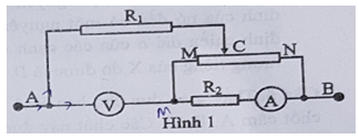 Cho mạch điện như Hình 1. Trong đó R1 = R2 = 12Ω, MN là biến trở con chạy có điện trở toàn phần là 24Ω, UAB = 6V. Coi vôn kế và ampe kế là lý tưởng.