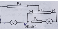 Cho mạch điện như Hình 1. Trong đó R1 = R2 = 12Ω, MN là biến trở con chạy có điện trở toàn phần là 24Ω, UAB = 6V. Coi vôn kế và ampe kế là lý tưởng.