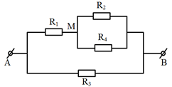 Cấu tạo mạch điện: \({R_3}//\left[ {{R_1}nt\left( {{R_2}//{R_4}} \right)} \right]\)