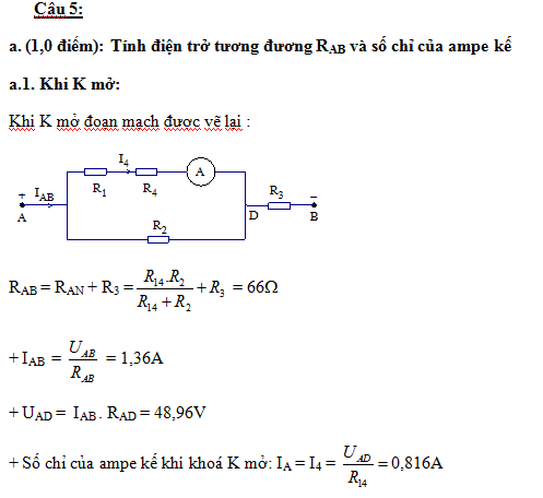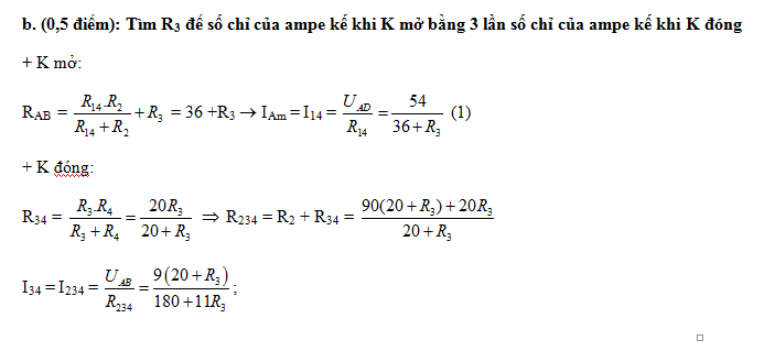 b) Tìm R3 để số chỉ của ampe kế khi K mở bằng 3 lần số chỉ của ampe kế khi K đóng.