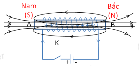 + Đầu A là cực nam (S), đầu B là cực bắc (N)