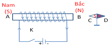 Suy ra: Đầu C là cực nam (S), đầu D là cực bắc (N)