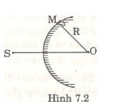 Cho một điểm sáng s đặt trước một gương cầu lồi tâm o, bán kính R. Coi phần mặt cầu nhỏ quanh một điểm M trên mặt gương cầu như một gương phẳng nhỏ đặt vuông góc với bán kính OM (hình 7.2).