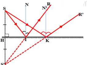 + Các tia sáng từ điểm S tới gương phẳng cho tia phản xạ có đường kéo dài đi qua ảnh ảo S'.