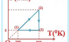 Cho một khối khí lý tưởng có p1 = 5atm, V1 = 2lít, T1 = 3000K biến đổi trạng thái theo đồ thị được biểu diễn bên dưới (hình vẽ 1)