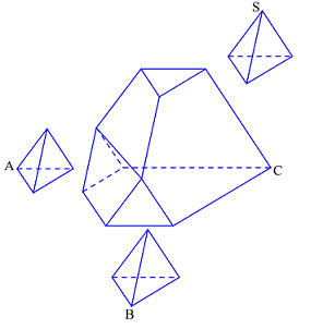 \( \Rightarrow \) Thể tích của khối tứ diện \(S.ABC\) là: \({V_{S.ABC}} = \dfrac{{{{\left( {\dfrac{{h\sqrt 6 }}{2}} \right)}^3}\sqrt 2 }}{{12}} = \dfrac{{{h^3}.6\sqrt 6 .\sqrt 2 }}{{8.12}} = \dfrac{{{h^3}\sqrt 3 }}{8}\)