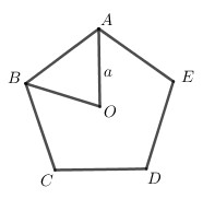 Cho ngũ giác đều ABCDE tâm O, biết OA = a . Phép quay \({Q_{\left( {C,\pi } \right)}}\) biến A thành A’, biến B thành B’. Độ dài đoạn A’B’ là: