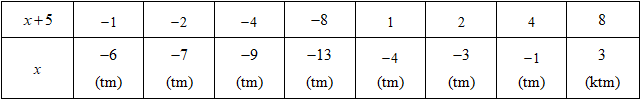 \(P\) có giá trị nguyên thì \(\frac{8}{{x + 5}} \in \mathbb{Z} \Rightarrow x + 5 \in U\left( 8 \right) = \left\{ { \pm 1; \pm 2; \pm 4; \pm 8} \right\}\)