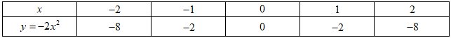 Vậy đồ thị hàm số \(\left( P \right):\,\,y = - 2{x^2}\) là đường cong đi qua các điểm \(\left( { - 2;\, - 8} \right),\,\,\,\left( { - 1; - 2} \right),\,\,\,\left( {0;\,\,0} \right),\,\,\,\left( {1; - 2} \right),\,\,\,\left( {2; - 8} \right)\) và nhận trục \(Oy\) làm trục đối xứng.