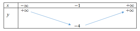 Bảng biến thiên của hàm số \(y = {x^2} + 2x - 3\)