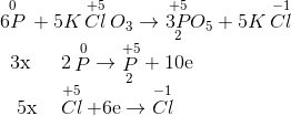 Cho phản ứng: P + KClO3 → P2O5 + KCl. Hệ số cân bằng của phương trình phản ứng này từ trái qua phải lần lượt là: