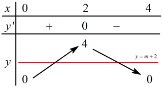 Dựa vào BBT ta thấy phương trình \(\left( 1 \right)\) có nghiệm \( \Leftrightarrow 0 < m + 2 < 4 \Leftrightarrow - 2 < m < 2.\)