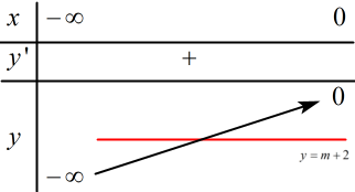 Dựa vào BBT ta thấy phương trình \(\left( 2 \right)\) có nghiệm \( \Leftrightarrow m + 2 < 0\,\,\,\,\left( {ktm} \right)\)