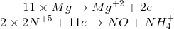 11Mg + 28HNO3 11Mg(NO3)2 + 2NO+2NH4NO3 +10H2O