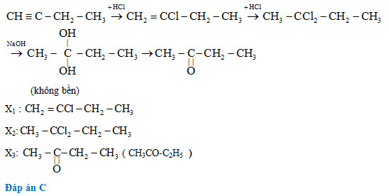 Cho sơ đồ: But-1-in \(\xrightarrow{{ + HCl}}\) X1 \(\xrightarrow{{ + HCl}}\) X2 \(\xrightarrow{{ + NaOH}}\) X3 thì X3 là: