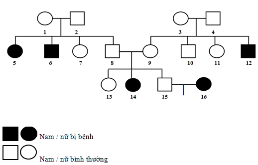 Sơ đồ phả hệ trên mô tả sự di truyền của một bệnh ở người do một trong hai alenm của một gen quy định. Biết rằng không xảy ra đột biến ở tất cả các cá thể trong phả hệ. Xác suất để cặp vợ chồng ở thế hệ III trong phả hệ này sinh ra đứa con gái bị mắc bệnh trên là: