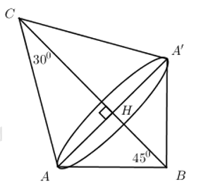 \(BH=AB.\cos {{45}^{0}}=\frac{\sqrt{2}}{2}.\frac{1}{\sqrt{2}}=\frac{1}{2}.\)