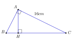 \(A{C^2} = HC.BC \Rightarrow BC = \frac{{A{C^2}}}{{HC}} = \frac{{{{16}^2}}}{{12,8}} = 20\left( {cm} \right)\)