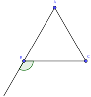 Cho tam giác đều \(ABC.\) Tính góc \(\left( {\overrightarrow {AB} ,\,\overrightarrow {BC} } \right).\)
