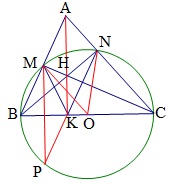 Cho tam giác nhọn ABC, đường tròn đường kính BC cắt các cạnh AB, AC lần lượt tại M, N. Gọi H là giao điểm của BN và CM.