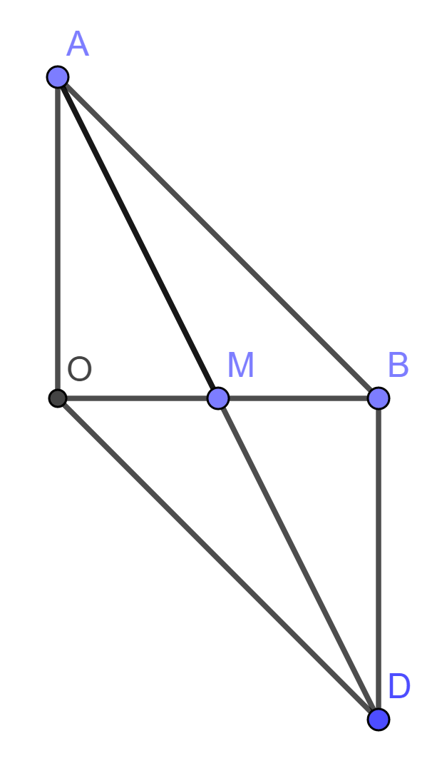 \(OM = \frac{{OB}}{2} = 2;\,\)\(OA = 4 \Rightarrow AD = 2AM\)\( = 2.\sqrt {O{A^2} + O{M^2}} \)\( = 2\sqrt {{4^2} + {2^2}} = 4\sqrt 5 \)