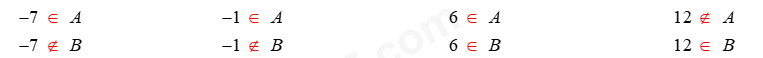 + Đối chiếu các phần tử đề bài hỏi với phần tử trong tập hợp để điền đáp án thích hợp.