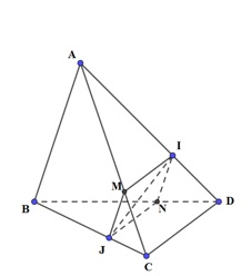 Thiết diện của mặt phẳng (P) và tứ diện ABCD là tứ giác MINJ, có: