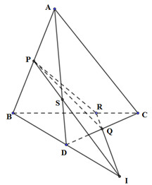 \(PI \cap AD = S \Rightarrow S\) là trọng tâm tam giác ABI \( \Rightarrow SA = 2SD\).