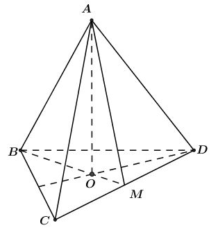 Gọi M là trung điểm của \(CD\Rightarrow \left\{ \begin{align} & BM\bot CD \\ & AM\bot CD \\ \end{align} \right.\Rightarrow CD\bot \left( ABM \right)\Rightarrow CD\bot AB.\)