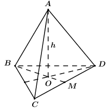 Vậy \({V_{ABCD}} = \dfrac{1}{3}AO.{S_{\Delta BCD}} = \dfrac{1}{3}.h.\dfrac{{3\sqrt 3 {h^2}}}{8} = \dfrac{{\sqrt 3 {h^3}}}{8}.\)