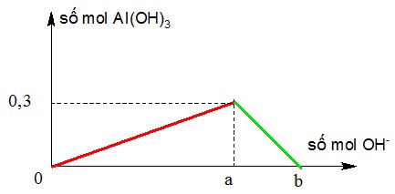 Tại điểm kết tủa vừa bị tan hoàn toàn: nOH- = 4.nAl3+ = 4. 0,3 = 1,2 mol → b = 1,2 mol