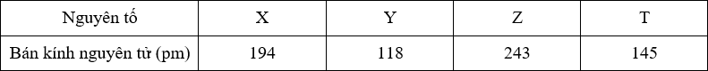 Đối chiếu với số liệu về bán kính nguyên tử ta thấy: Z > X > T > Y