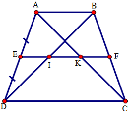 Xét hình thang \(ABCD\) có \(AB//CD,AE=ED,FE//AB//CD\), suy ra \(BF=FC\) (định lí đường trung bình của hình thang).