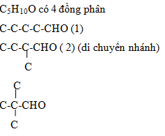 Có bao nhiêu andehit là đồng phân cấu tạo có cùng công thức phân tử C5H10O?