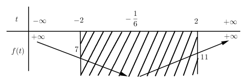 Xét hàm số \(f\left( t \right) = 3{t^2} + t - 3\) với \(t \in \left( { - \infty ; - 2} \right] \cup \left[ {2; + \infty } \right)\) ta có BBT: