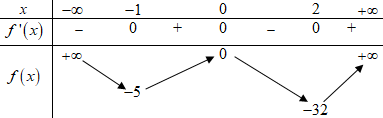 Xét hàm số \(f\left( x \right) = 3{x^4} - 4{x^3} - 12{x^2}\) có \(f'\left( x \right) = 12{x^3} - 12{x^2} - 24x = 12x\left( {{x^2} - x - 2} \right),\)\(f'\left( x \right) = 0 \Leftrightarrow \left[ \begin{array}{l}x = 0\\x = - 1\\x = 2\end{array} \right.\)
