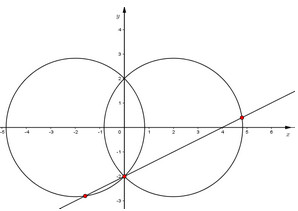 Vậy số phức thỏa mãn 2 giả thiết trên là số giao điểm của \(d\) với \(\left( {{C_1}} \right)\) và \(\left( d \right)\) với \(\left( {{C_2}} \right)\).