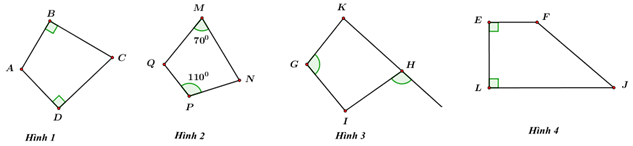 - Hình 3: Ta có: \(\angle EFJ > {90^0},\,\,\angle ELJ = {90^0}\) \( \Rightarrow \angle EFJ + \angle ELJ > {180^0}\).