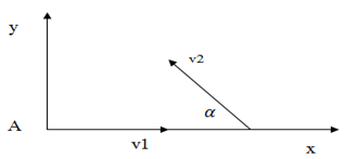 \(\left\{ \matrix{ {x_2} = a - {v_2}c{\rm{os}}\alpha t \hfill \cr {y_1} = {v_2}\sin \alpha t \hfill \cr} \right.\)
