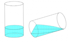 Có một cốc thủy tinh hình trụ, bán kính trong lòng đáy cốc là 6cm, chiều cao trong lòng cốc là 10cm đang đựng một lượng nước. Tính thể tích nước trong cốc, biết khi nghiệm cốc nước vừa lúc khi nước chạm miệng cốc thì ở đáy cốc mực nước trùng với đường kính đáy.