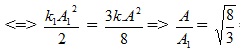 Con lắc lò xo dao động điều hòa với biên độ A, đúng lúc con lắc qua vị trí có động năng bằng thế năng thì người ta cố định tại điểm chính giữa của lò xo. Con lắc lò xo tiếp tục dao động điều hòa với biên độ A’. Xác định tỉ số giữa biên độ A và A’