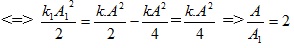 Con lắc lò xo dao động điều hòa với biên độ A, đúng lúc lò xo dãn cực đại thì người ta cố định tại điểm chính giữa của lò xo. Con lắc lò xo tiếp tục dao động điều hòa với biên độ A’. Xác định tỉ số giữa biên độ A và A’
