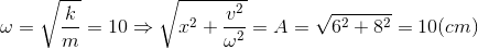 Con lắc lò xo gồm một vật nặng khối lượng m = 1kg, một lò xo có khối lượng không đáng kể và độ cứng k = 100N/m thực hiện dao động điều hòa. Tại thời điểm t, li độ và vận tốc của vật lần lượt bằng x = 6cm, và v = 80 cm/s. biên độ dao động của vật là?