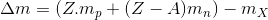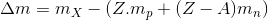 Công thức tính độ hụt khối của nguyên tố .