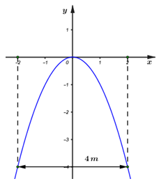 Cổng vào một ngôi biệt thự có hình dạng là một parabol được biểu diễn bởi đồ thị hàm số \(y = - {x^2}.\) Biết khoảng cách giữa hai chân cổng là \(4\,m.\) Một chiếc ô tô tải có thùng xe là một hình hộp chữ nhật có chiều rộng là \(2,4\,m.\) Hỏi chiều cao lớn nhất có thể của ô tô là bao nhiêu để ô tô có thể đi qua cổng?