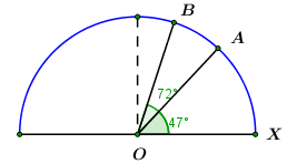 a) Ta có: \(\angle AOB = \angle XOB - \angle XOA = {72^0} - {47^0} = {25^0}.\)