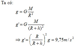 Tính gia tốc rơi tự do ở độ cao 15km so với mặt đất. Biết gia tốc rơi tự do ở mặt đất là g=9.8m/s2, bán kính Trái Đất là R=6400km?