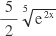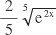 ${{y}^{'}}={{\left( \sqrt[5]{{{e}^{2x}}} \right)}^{'}}={{\left( {{e}^{\frac{2x}{5}}} \right)}^{'}}=\frac{2}{5}{{e}^{\frac{2x}{5}}}=\frac{2}{5}\sqrt[5]{{{e}^{2x}}}.$