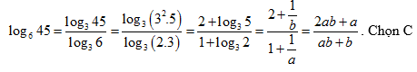 Đặt a = log2 3, b = log5 3. Hãy biểu diễn log6 45 theo a và b
